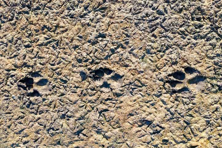 Il cane è il motivo per cui il riconoscimento diventa difficile. Esistono taglie, razze e morfologie molto diverse, e alcune impronte possono avvicinarsi molto a quelle di un lupo. In generale, ciò che cambia più spesso è la “lettura complessiva” dell’orma: molte impronte di cane risultano più tonde e aperte, con dita che possono divergere di più e un contorno meno “compatto”. Anche l’appoggio può essere più variabile: se un cane si ferma, gira, torna indietro, cambia passo, sul terreno troviamo spesso una traccia meno regolare e più “disordinata”, soprattutto se osserviamo più impronte di fila.
